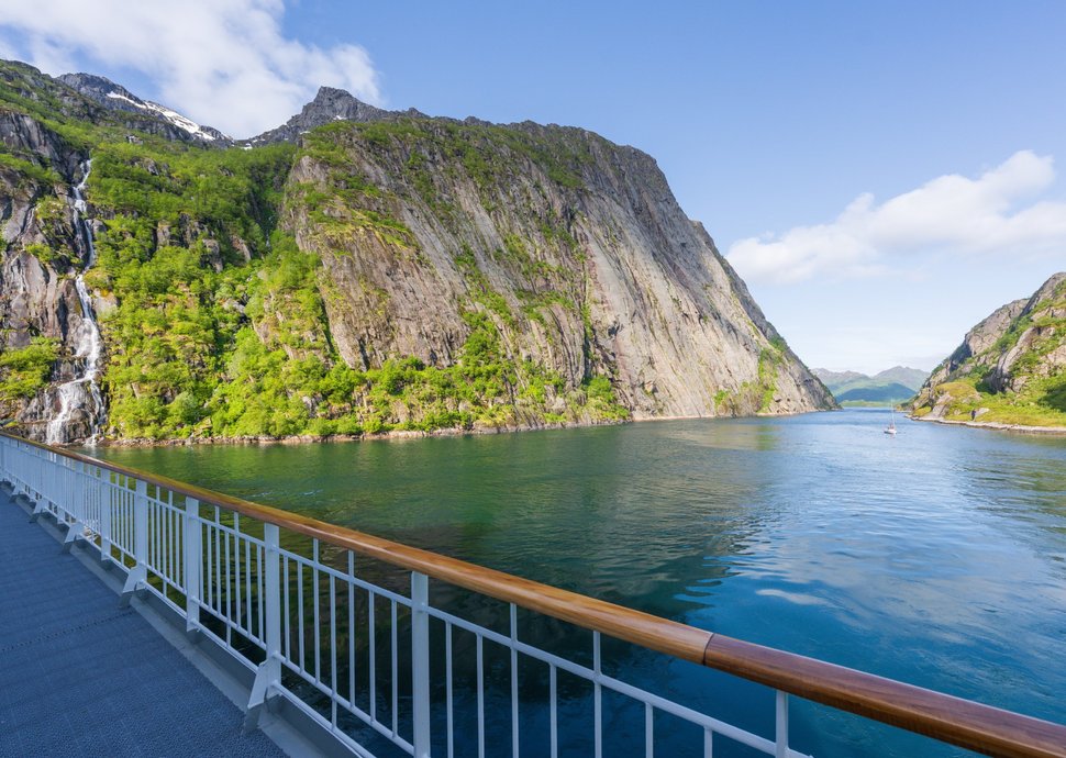 Eben noch flanierten wir durch das bunte Hansestädtchen Bergen, erklommen den Hausberg der Jugendstilstadt Ålesund und bestaunten die bunten Fenster der Mitternachtskathedrale im Tromsø, auch „Paris des Nordens“ genannt. Und schon begeistert uns die endlose Weite zwischen Meer und Himmel, jenseits von Zeit und Raum.