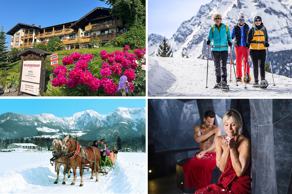Der Schlossberghof, in dem in ruhiger Naturidylle die drei Säulen Natur, Gesundheit und Kultur perfekt miteinander kombiniert werden, ist ein wahrer Gesundheitstempel mit facettenreichen Kur- und Wellnessangeboten, aus denen die Gäste das passende Paket wählen und somit viel in die eigene Vitalität und Gesundheit investieren. Dabei treffen sie auf bayerische Gastfreundschaft, Kompetenz und Erfahrung mit altbewährten Heilmethoden im gesunden Heilklima Bad Reichenhalls. Im Winter steigen Hausgäste direkt vor dem Haus in die Langlaufloipe ein, freuen sich auf Spass beim Eisstockschiessen auf dem Schlossweiher, lernen Schneeschuhwandern, geniessen einen Tag auf einer der Skipisten der zahlreichen Skigebiete im Salzburger Land oder Berchtesgadener Land und erfreuen sich an einer romantischen Pferdeschlittenfahrt. Zur reinen Erholung stehen neben dem beheizten Erlebnis-Hallenbad (28°C) und dem weitläufigen Saunabereich auch Massagen, Packungen und Bäder zur Verfügung.
