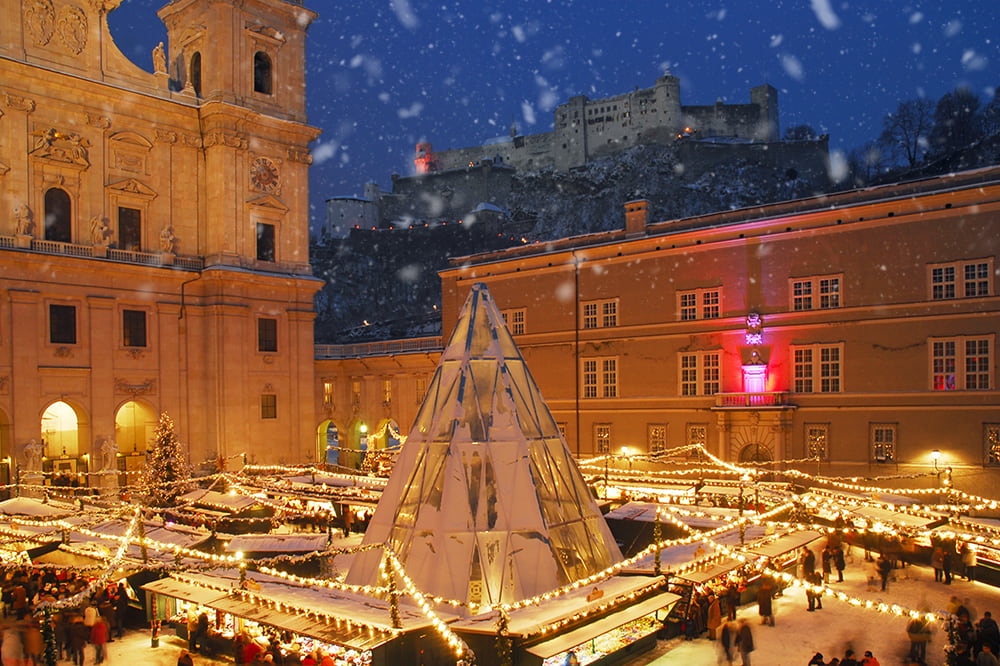 Salzburg ist wie geschaffen für diese märchenhafte Stimmung. Die Weihnachtsmärkte, Adventkonzerte und Brauchtumsveranstaltungen verzaubern ab dem 20. November die Besucher der Stadt. Jetzt bietet sich die ideale Gelegenheit, einen Kurztrip nach Salzburg mit dem Besuch der Weihnachtsmärkte zu kombinieren. Ein Bummel durch Salzburg in der Adventzeit ist ein echtes Erlebnis. Nicht versäumen sollte man dabei den Salzburger Christkindlmarkt am Dom- und Residenzplatz. Dieser historische Christkindlmarkt zählt zu den schönsten Adventmärkten der Welt. Besonders beliebt bei Familien ist der entzückende Adventzauber vor der märchenhaften Kulisse von Schloss und Schlosspark Hellbrunn. Über 700 Nadelbäume werden mit 10.000 roten Kugeln und Lichterketten geschmückt und tauchen das gesamte Areal in einen adventlichen Glanz. Und auch der beschauliche Adventmarkt am Mirabellplatz unweit des Mirabellgartens ist einen Besuch wert, genauso wie der Festungsadvent auf der Festung Hohensalzburg.